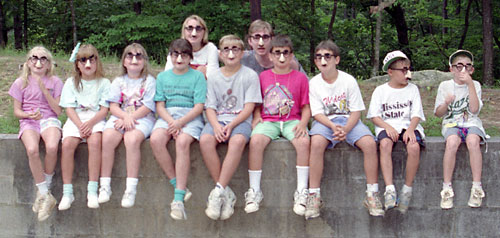 Partial list of campers, counselors and staff I went to camp with: Kim Amberson, Janna Barrett, Bonnie Barrett, Jake Barrett, Buzz Barrett (I promise, the only reason we snuck out was to get some ice), Sharon Glenn (I have a good photo of you taking a photo of me), Jennifer Shaddix, Scott Minter, Chad Minter, Jerome Washington (I have some photos of you guys in Auburn, too), Billy Reaves, Melinda Watts (Melinda Reaves), Earl Freeman, Beth Golson (Beth McGlaughn), Danny Jones, Karin Gordon, Angela Green, Melissa Burke, Christopher Williams, Casey Veal, Clay Arnold, Jason Blake, Chrystal/Christy Prestridge, Lindy Rhyne, Allison Cone, Robin Ingram, Lesli Harbin, Katie Veal, Ben Larkin (how could you not come back the next year???), Debra Welsh, Chip Rains, Deana Mixon, Susan Ham, Paige Singleton, Michelle Phillips (I can't believe you talked to Chris and didn't leave any contact info!), Kelly Turner, Alan Arrington, Timon Brown, Nick Cantrell, Rebecca Hood, Carrie Marbut, Christy Marbut, Brad Naile, Christopher Reynolds, Kristin Thompson, Mark White, Kristan Capps, Jessica Laney, John Moseley, Tynley Formby, Jeff Lenard (bet you can't jump to that rock), Tiina Kallianaki, Elisa Gilman, Joy Muse (Joy Brown; I'm gonna sue over this photo), Marc Lemay, Leigh Burrage, Leah Dobbs, Vicki Cannon (Vicki Webb), Meredith Wooley, Juliana Gray (Juliana Vice), Melony Cook (Melony Ford [good group photo, huh?]), Monica Barrios, Grady Lacher (oh yeah, you're gonna pay to suppress this photo), Leslie Hinds, Traci Bell, Tina McElroy, Leah London, Andy Israel, Scott Kilgore, Riley Roby, Courtney Tomlin, Holly Weaver, Amy Witter, Amy Woodard, Jennifer Burns, Chrissie Coffey, Kristen Friday, Mary Helen Gordon, Virginia Holbrook, Michelle Moore, Dawn Connolly, Chuck Connolly, Ashley Cox, Melanie Dobbs, Lori Haaber, Tara Raiden, Lesley Todd, Jeremy Beason, Eric Laney, Jason Long, Brian Scott, Elenor Buck, Gina Harrell, Sissy Hembree, Jehan Hicks, Cheri Honey, Diane Kopecky, Kelly Owens, Erin Skinner, Gina Marie Harden, Dawn Hassell, Ashley Holmes, Rachel Marshall, Jenny Murphy, Elizabeth Smith, Cheri Speliades, Amy Tingle, Michael Born, Julie Bryant, Kendrick Carlisle, Andra Golden, Andi Gray, Justin Grimes, Ashley Hampton, Chris Harris, Matt Walker, Jeremy West, Austin Williams, Susan Russell, Elisabeth Lewis, Ashley Toland, Lisa Saxon, Tyler Brooks, Daniel Sevedge, Andy Johnson, Luke Bentley, Kris Wadkins, Kelly Johnson, Amanda Koch, Jenny Larkin, Christy Nivens, Michelle Williams, Walter Jones, Amy Ferguson, Dawn Bachmann, Kim Peck, Chris Abernathy (no, _I_ was the one in college!).