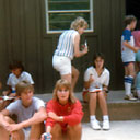 This was my second week as a counselor at Sumatanga. This year had many of the same counselors and staff as camp V the previous year. I don't seem to have any photos of my own from this camp, but Scott Minter found a few photos that appear to be from this week at camp, and I've posted them below. (I can't definitively say that they are from camp V, 1985 - that's the only week that I went to which everyone in these photos was also at, but there's no guarantee that all of these photos are even from the same camp.) I do have the camp directory, which I have also posted below. I've put an asterisk beside the campers that were in my group, but my notes are confused and incomplete, and I don't know who my co-counselor was. Unfortunately, it's a pretty bad copy and I couldn't make out all the names, so there may well be some misspelled names below - I marked the ones I was most unsure about with a question mark. Apologies if I typed in anyone's name incorrectly or accidentally missed any names.